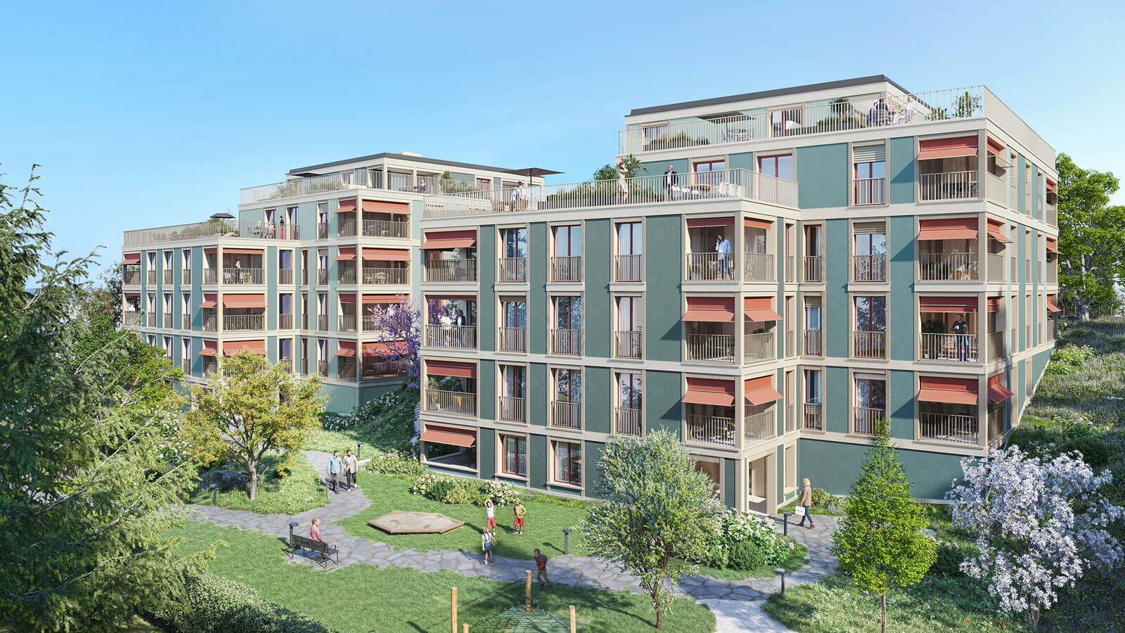 Die durchdachten Grundrisse sprechen eine breite Zielgruppe an – von Paaren und Familien bis hin zu Seniorinnen, Senioren und berufstätigen Einzelpersonen. Die Wohnungen erstrecken sich vom Gartengeschoss über das Sockel- sowie das 1. und 2. Obergeschoss bis ins Attikageschoss und bieten eine grosse Vielfalt an Wohnlagen.
